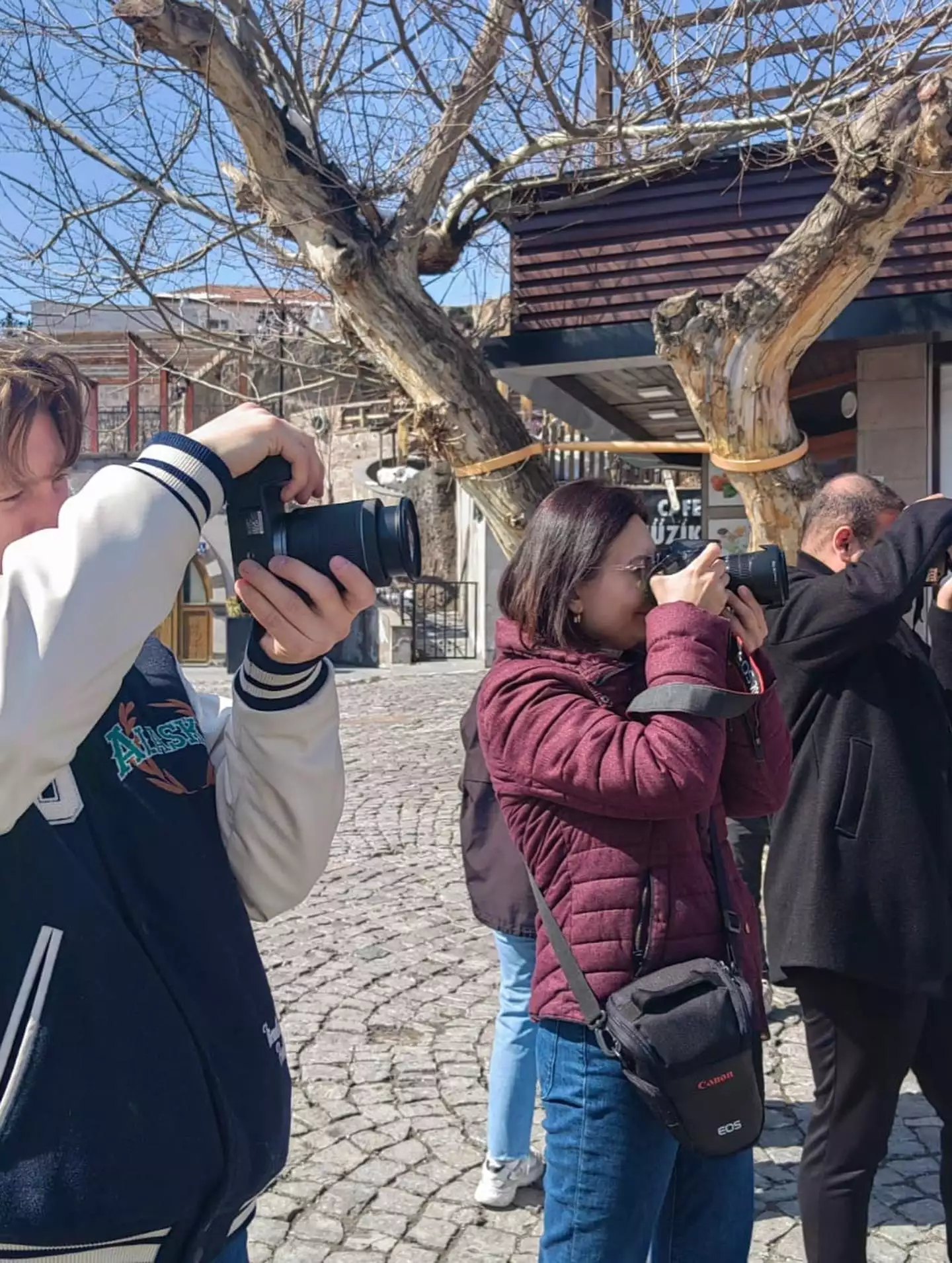 Rektörlük Güzel Sanatlar Bölümü Alan Dışı Seçmeli Uygulamalı Fotoğrafçılık dersi kapsamında bölüm öğretim görevlisi Uğur AYDIN hocamızın ilk uygulama atölyesi bu hafta Talas’ın tarihi sokaklarını fotoğraflayarak başladı. Talas Belediyesi’nin Osmanlı Sokağında açmış olduğu Sanat Akademisi gezilerek Ebru sanatı ve Hat sanatı eğitmenlerinden bilgi alındı. Yine Talas belediyesinin açmış olduğu eski usüllerle ve geleneksel yöntemlerle ürettiği keten kağıdı atölyesi fotoğraflandı. Han meydanı ve camisinin farklı açılarla fotoğraflandığı fotoğraf atölyesi Talas’ın eski sokaklarında son buldu.