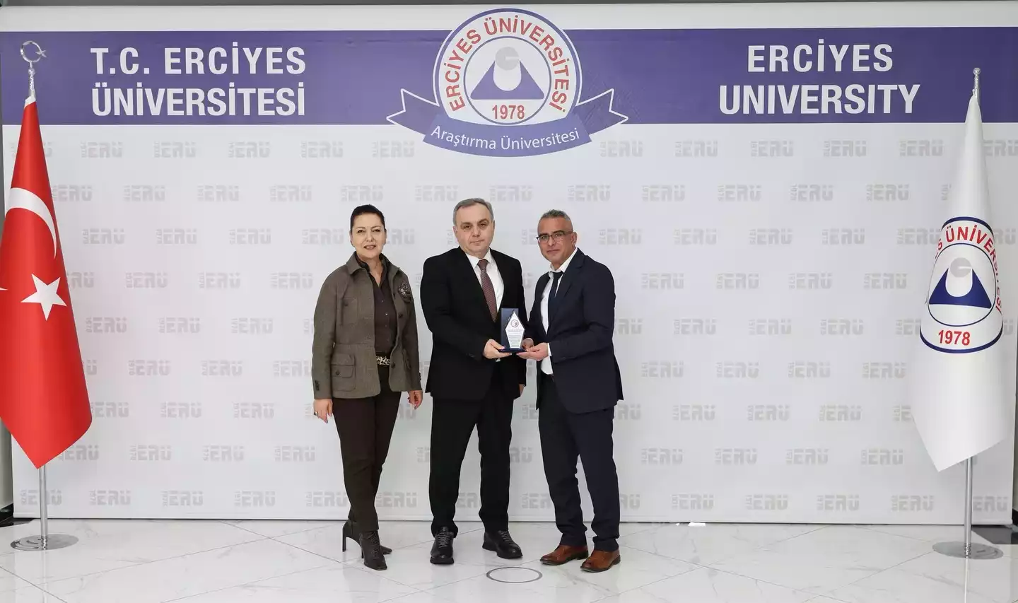 Bu kapsamda desteklerinden dolayı ESEPCongress25 kongresi Onursal Başkanı, Erciyes Üniversitesi Rektörü Prof. Dr. Sayın Fatih ALTUN hocamıza, LEGADDER Yönetim Kurulu Başkanı Sayın Gökhan ARIKAN ve Rektörlük Güzel Sanatlar Bölüm Başkanı Sayın Nihal ŞENGÜN teşekkür ziyareti gerçekleştirerek plaket takdiminde bulundular.