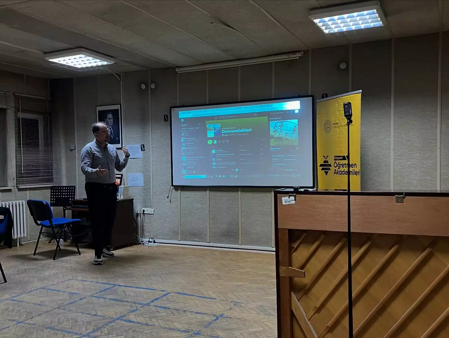 Kayseri İl Milli Eğitim Müdürlüğü öğretmenlerimizden 20 kişinin gönüllülük ilkesiyle katılımından oluşan Müzik Akademisi etkinliğimiz 07 Ocak 2026 tarihinde Doç. Dr. Kıvanç AYCAN hocamızın “Müziğin Evrenselliği ve Müzik Eğitimi” konu başlığı ile verdiği eğitimle gerçekleştirildi.