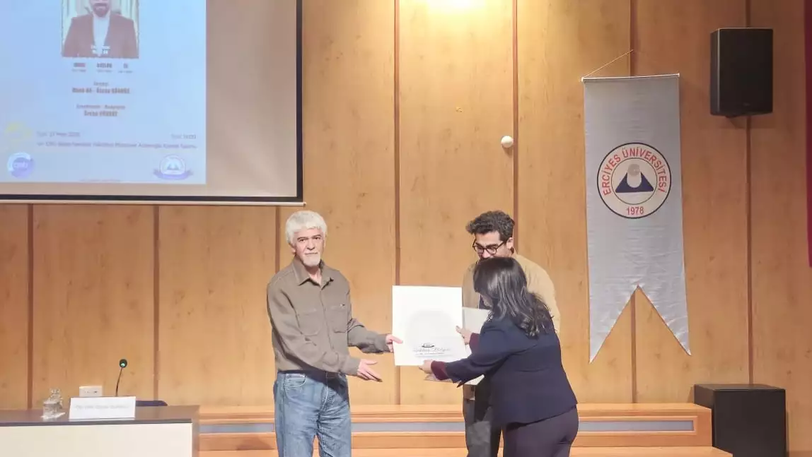 Program sonunda bölüm Öğr. Gör. Dr. Mehpare YAĞLICI hocamız tarafından bölüm başkanlığı adına davetli konuğumuz ve etkinlik koordinatörümüze belge takdimi gerçekleştirildi.